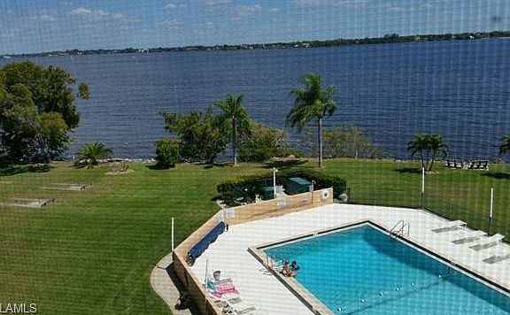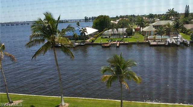 This end unit 5th floor condo has views of the Gulf and Intercostal that go on as far as you can see! The 5th floor looks over all of the area and gives you amazing natural light and breezes all day long. The lanai has 4 Season screening allowing for the opportunity to extend your living space 12 months a year. The interior needs updating, but allows for the discerning buyer to create their own piece of paradise any way they can imagine it! With a parking space directly in front of the building and extra storage on the main floor, what great conveniences all in the sun shine! This is a 55+ community that has had a new roof and AC 2 years ago and a 1 year old water heater. Docks are available to owners. Just imagine yourself coming home to the views and location that this condo provides in the heart of Cape Coral!