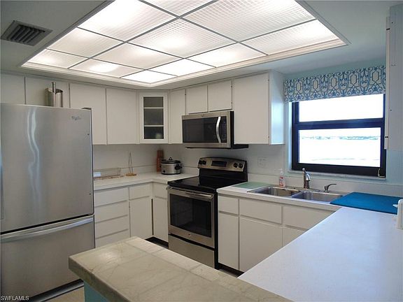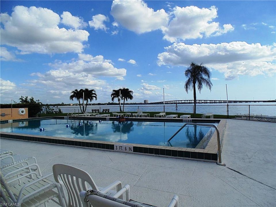 Short term / Seasonal Rental - 55+ condo at the end of Beach Pkwy offers the best water views in the city, and is a short walk to Jaycee Park. Corner unit extremely well maintained building has gotten a new roof, a/c, and parking lot in the last 3 years. the condo has a new look, well maintained, very clean. Stainless Steel appliances in the kitchen - The large lanai over looks the Caloosahatchee River and Cape Coral Bridge and has pocket sliders to the family room. The large community pool over looks the river. Community amenities include private fishing pier, community marina, library, community room w/ billiards. start your Florida lifestyle now!NO PETS HOA Rules, Background check required HOA, tax 11% Call for full details