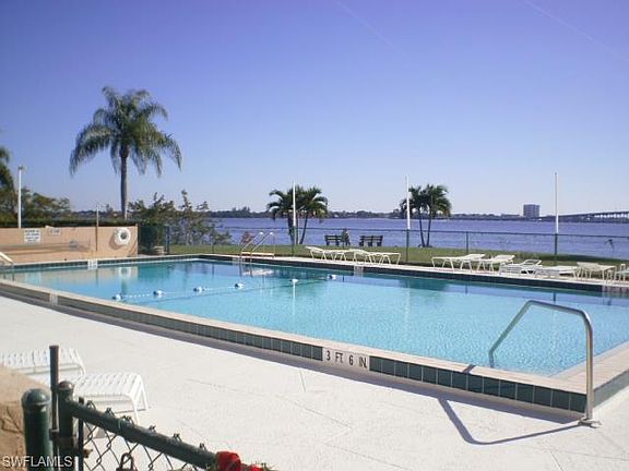 What A view!!! This Unit is being sold turnkey just bring your toothbrush***** This unit has a BIG water view of the CALOOSAHATCHEE River and the Cape Coral Bridge. Watch the 4th of July Fireworks from your balcony, watch the Sun Rises and Sunsets. Totally remodeled 2 bed room 2 bath***Washer and Dryer in unit***New kitchen with Granite Counters and new Tile Floor, New Vanity and Tile In Bathrooms, Berber Carpet, Newer Appliances, Crown Molding***55+ Community