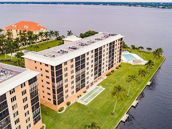 RIVERFRONT CONDO! Move-In Ready! You can Celebrate the Florida Lifestyle beginning with this BREATHTAKING VIEW of the Caloosahatchee River! This 6th Floor 2 Bedroom 2 Bath Condo has been completely updated. As you enter, you are greeted by the remodeled kitchen w/Wood Cabinets, Granite Countertops & light and bright LED lighting. Both Bathrooms have been stylishly renovated, which you have to see to believe. This beautiful unit includes it's own laundry room, impact windows/slider for your safety. Picture yourself having an evening cocktail on your private lanai enjoying the southerly breezes & admiring the spectacular colors of the setting sun. River Towers Condos is perfect for all you "Fun In The Sun Lovers" because nearby is Jaycee Park to fulfill your active lifestyle...walking, jogging, biking, fishing & more. You are minutes to downtown Cape Coral, shopping, fine dining, entertainment & beaches. Condo amenities include: heated Riverfront Pool with Tiki Hut overlooking Cape Coral bridge and intersecting canal, fishing pier, community rooms, shuffleboard, storage unit & more. Friendly 55+ no pets. Don't delay as the Paradise Weather is here & this Condo won't last long!!!