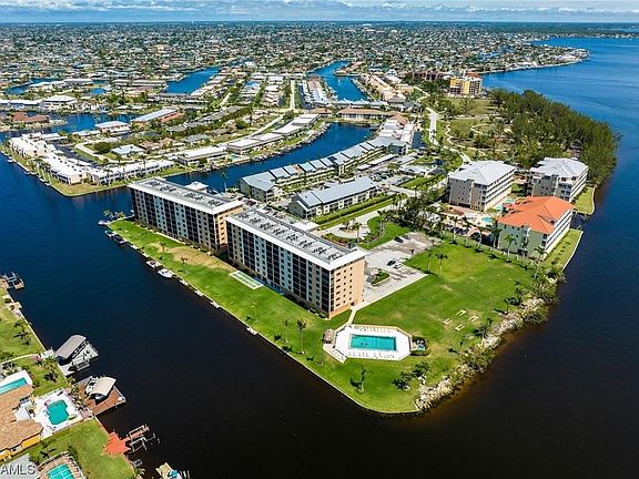 Discover the allure of captivating river and canal vistas from the exclusive vantage point of this 6th-floor corner unit within River Towers Condos. Revel in the panoramic scenes stretching eastward across the Caloosahatchee River, showcasing enchanting sunrises, and westward along the Minstrel canal, offering spectacular sunsets. Impeccably maintained, this condo, attractively priced for a swift sale, is situated at the cul de sac's end of Beach Parkway in Cape Coral, embodying the quintessence of living in South Florida. Featuring impact sliding doors and windows, recently updated bedroom carpet, and more, this residence exudes coastal elegance. River Towers Condos grants access to a riverside heated pool, a shaded tiki area for dolphin and manatee watching, and proximity to Jaycee Park - an embodiment of the South Florida lifestyle. Seize the opportunity to claim this as your future home or vacation retreat before it's claimed by another discerning individual!