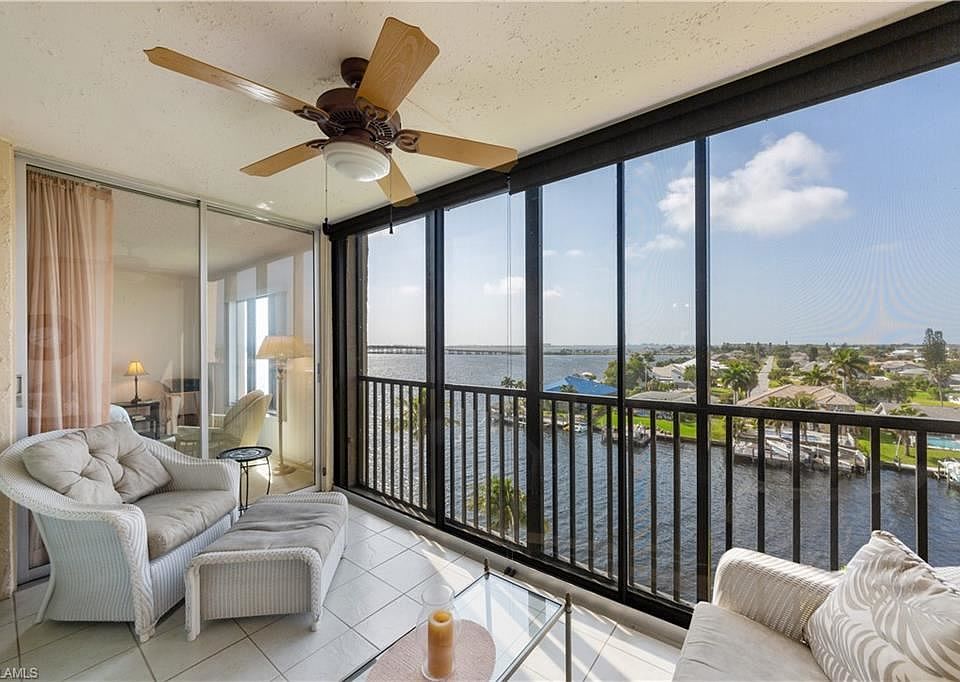 Views like this don't come along every day! This 7th floor 2/2 condo features dramatic views up and down the Caloosahatchee from sun-up to sunset. Very well maintained condo comes furnished & turnkey is ready for you! Impact Resistant Windows throughout and sliders in the of lanai for year around living giving extra room to roam. Included in condo is laundry in unit and private storage area located on ground level plus 1 reserved parking spot. River Towers Condos is situated on the Caloosahatchee and intersecting canals with SE & SW rear exposure at the end of Beach Parkway. Offering a beautiful heated pool and tiki overlooking the Cape Coral Bridge and intersecting canals, a fishing pier, community room and so much more. The development is 55+, no pets and non-smoking. There are boat slips that are handled directly through the HOA. Walking to Jaycee Park, sidewalks and bike paths and palm tree lined streets welcome you home. Downtown Cape Coral and all of the restaurant's, cafe's, brewery's, and the Cape Coral Beach are minutes away. Make this your new winter destination!
