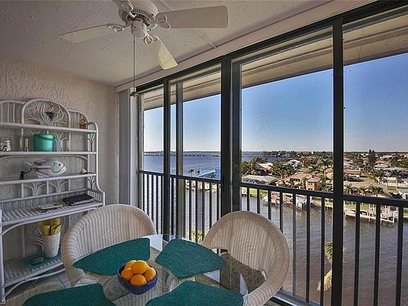 Looking for a condo that will give sunrises and sunsets while looking over the Caloosahatchee? This 8th floor 2/2 condo well maintained and ready for a new owner. Updated light and bright kitchen, both bathrooms have walk in showers with updated tile and glass doors and newer vanities. AC new in 2014. Offering tile and carpet throughout, this fully furnished condo is ready for you. This condo comes with indoor laundry as well as a community laundry area plus one reserved parking spot, plenty of guest parking and a 10x10 storage unit. Come see for yourself! The development is very well maintained with plenty reserves. There is no pool like this one in any Beach Parkway condo complex! Located on the river and intersecting canals with views to the Cape Coral bridge and down river. This is a 55+ complex, no smoking and no pets are allowed. Boat dockage is handled via the HOA.