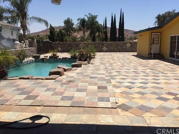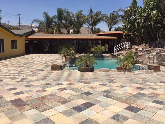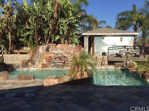 ...EXECUTIVE LIVING AT ITS BEST.....WROUGHT IRON GATE WITH AUTO OPENER..RV PARKING.....THE PROPERTY HAS BEEN UPGRADED FROM TOP TO BOTTOM FOR EVERY ROOM AND BATHROOMS, INCLUDING GARAGE WITH ITS WALLS DRYWALLED, FLOOR WITH NICE MARBLE.....NEW DESIGNER PAINT.... .......RESORT LIKE BACK YARD WITH SPARKLING ROCK POOL WITH SLIDE AND SPA, SURROUNDED BY MATURE PALM TREES, TILE PAVED PATIO WITH OVER EXTENDED PATIO COVER, BUILT-IN BAR-BE-QUE, FOR LARGE FAMILY GATHERINGS....2 ADDITIONAL BATHROOMS FOR OUTDOOR ACTIVITIES.....5 BEDROOMS AND 3 FULL BATHS IN MAIN HOUSE....1 STUDIO UNIT WITH UPGRADED BATH AND KITCHENETTE COMPLETE WITH CABINETS..........MAIN HOUSE HAS WALL TO WALL MARBLE FLOORING THROUGHOUT THE ENTIRE HOUSE, BATHROOMS UPDATED WITH DESIGNER TILE WALLS WITH RIMLESS GLASS DOORS....KITCHEN AND BATHROOMS HAVE GRANITE COUNTER....GOURMET KITCHEN HAS ALMOST NEW CUSTOM CABINETS WITH PULL-OUT TRAYS, GLASS DOORS AND WINE RACK AND RECESSED LIGHTS......NOTICE THE CROWN MOLDINGS IN EVERY ROOM....FRONT ENTRY DOORS ARE MASSIVE WROUGHT IRON DOORS..................BUILT-IN CORRALL FOR HORSES...HUGE METAL CAGES FOR BIRDS...LARGE GRASSY AREA IN THE FRONT AND BACK..........