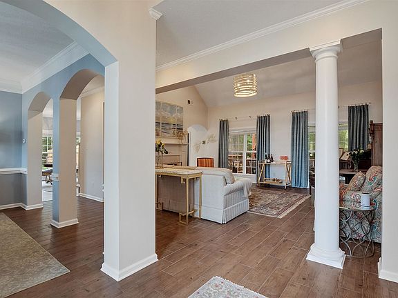 NOW PRICED UNDER CURRENT APPRAISAL! Beautiful brick home featuring exceptional updates! FOUR bedrooms, THREE full baths, open kitchen w/ b'fast bar, hearth rm, living rm, dining rm, + BONUS! High ceilings, balcony, custom lighting, fireplace & low maintenance floors. Picturesque backyard offers a deck, custom covered porch w/ vaulted ceiling overlooking beautiful yard + 3 car garage! (Bedroom 3, currently an office, not pictured). Bon Lin Elementary & Middle Schools! SPECIAL FINANCING available!