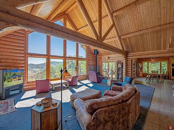 Situated above 9400 feet on over 35 acres, this custom log home is bordered by BLM and offers picturesque views of the surrounding Colorado mountains and Gunnison valley. Every level of the home and every space is graced with a wall of windows bathing every room in warm natural sunlight. The home’s main level presents a spacious kitchen and dining area along with an open living space warmed by a wood stove. The primary suite offers privacy and luxury – enjoy your own balcony to take in the morning sunrises or evening sunsets. A powder room along with a laundry room and oversized balcony off the dining room round out the main floor. The home further features a loft which can be utilized as additional sleeping quarters or as an office and library space. The walk out basement provides two more generously-sized bedrooms, a bathroom, and plentiful space for a family game room. HOA dues cover the road plowing from the subdivision to the paved road. Buyer may plow their drive and work with the current service provider for any additional plowing for winter access. If you’re looking for your own slice of Colorado paradise, this off-grid beauty with well, septic, and solar all within a 16-mile drive to Gunnison could be it!