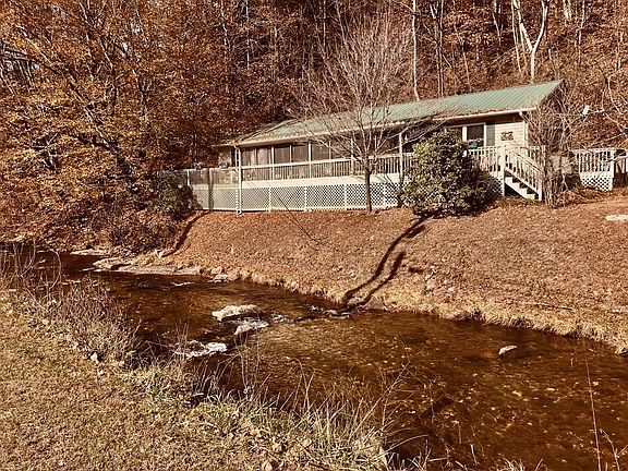 Quaint ranch style home that is nestled in the desirable Alarka community with pastoral views yet creekfront. Sit back and relax on the screened in front porch that is situated alongside the Alarka creek that is stocked with trout. Easy year around access with multi car parking available. Private with flat and mountainous property. Great area to have a small garden, firepit area to roast smores and sit by the creek and even build a horseshoe pit. Three bedroom/2 bath home that would make a great year around home or a lovely vacation place. Open living room/dining/kitchen divided by an island for additional gather around time. Laundry room with an additional entrance.