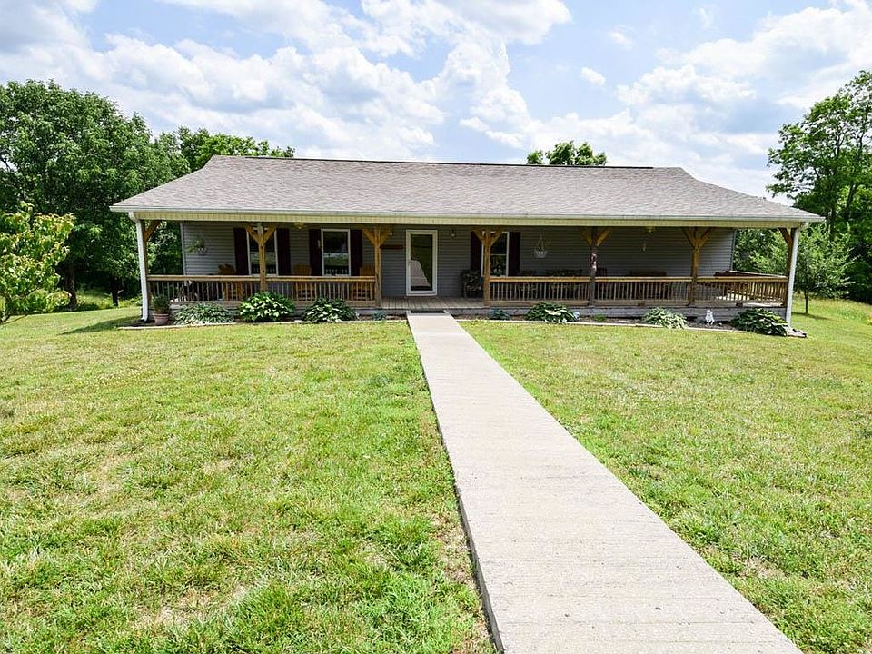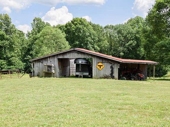 A rare find! Nestled in the woods, but close to town, gated. 42 acre estate offering guest/in-law cabin with BD,LR. cedar handmade walls+pegged floor. FP with rocks hewed from property. 3 stall horse barn w/ feed+tack rooms. Gorgeous home w/hickory flooring, huge covered porch. Being used as a 3 bd home, only perked for 2 bd.