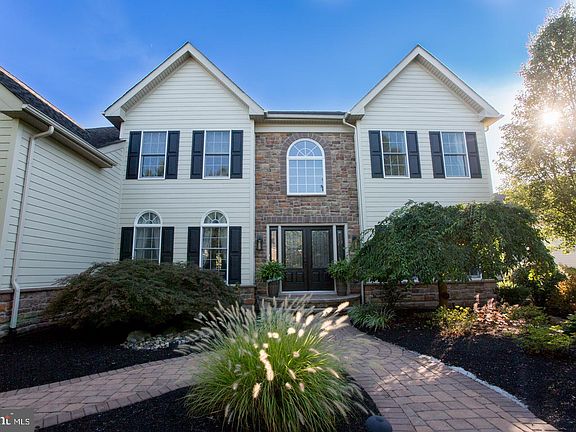 Warm and inviting, from the moment you drive up to this beautiful home, you feel welcomed. The front yard has been transformed into a garden with terraced walls and two well-placed paver stone walkways to allow for access from the sidewalk or driveway. Professional Hardscaping & Landscape lighting adds to the ambience while the inground sprinkler system (in both front and backyards) allows for ease of use. A double-door entry way with iron detailing unfolds to this wonderful floorplan of the Madison model. A solid-oak curved staircase ~perfect for picture-taking ~graces the foyer. To the right is the cozy and quiet living room and to the left is the dining room ~ both with Palladian windows and the hardwood floors that run through most of the first floor. Moving forward you enter the great room space of this home. With a vaulted ceiling and two skylights flanking the floor-to-ceiling stonefaced gas fireplace this room spells R.E.T.R.E.A.T! Plantation Shutters give you the option of letting all that natural light in or darkening the room for TV viewing. Fitted with speakers for entertaining or movie-watching pleasure this space was meant for entertaining or relaxing ~ as you wish. Overlooking the family room is the expanded Palladian kitchen with larger island with seating for several chairs, and black stainless appliances including a gas cooktop with a downdraft feature and grill accessory as well as two wall ovens, oversized side-by-side refrigerator, microwave and dishwasher. The double-sink overlooks the beautiful backyard with a large window that connects you to the outdoors. Additional cabinetry was added to the knee wall between the kitchen table area and family room providing additional storage and entertaining options in this space. Off the kitchen is the laundry/mudroom area with access to the 3-car attached garage, and entry door to backyard space. This space is fitted with a double-closet, cabinetry and upgraded laundry sink. Finishing out the first floor is the office with French-doors. Leading to the upstairs you have your choice of the rear-staircase or foyer staircase both of which take you to the second-floor overlook. The master bedroom welcomes you first with a sitting room and then leads down the hallway to the bedroom area and tremendous walk-in closet with custom cabinetry organization. The master bathroom is an oasis with upgraded and updated tile and fixtures, two separate vanities, separate soaking tub, shower and water closet. The "Princess Suite" is fitted with its own full bath again with newer, updated tile ~ no builder grade tile in this house. Finally the 3rd and 4th bedrooms flank the shared "Jack and Jill" bathroom complete with linen closet, double vanity and upgraded tile. Downstairs, the basement is ready for your finishing touches and has an egress window allowing for extra daylight to pour into this space. In the basement, a sump pump with battery backup, radon mitigation system and newer hot water heater provide for peace of mind. Back outside, the sliders from the kitchen to the paver patio open to lovely professionally landscaped gardens. There is plenty of gathering or unwinding space on the patio, while mature plantings provide privacy. Watch gorgeous sunsets unfold from this spot or simply sit back, relax and enjoy any way you like. All new Anderson windows throughout the home (except for fixed window above entry door) installed 2017. All new exterior entry doors installed 2017/2018. Stucco removed in 2017 and new Hardie Plank and Stone installed. There is central vac and a whole-house Siemens generator for added convenience. All this and Award-Winning Central Bucks School District. Welcome home!