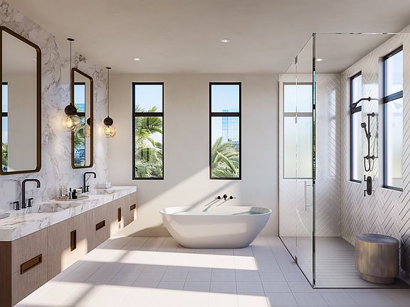 This generous 3 bedroom, 2.5 bathroom residence features an open and airy floorplan with approximately 2,052 square feet and a private 93 square foot terrace with optional outdoor kitchen. This half-floor residence with a great room designed to flow effortlessly onto the terrace, is punctuated by triple-sliding window walls. The centrally located kitchen with views, is finished in custom millwork and countertops and outfitted with Wolf and Subzero appliances. The light-filled primary suite is tucked away for privacy, with a spacious walk-in closet, and en-suite bath replete with a large soaking tub, spa-sized shower, and custom dual vanity.With 10-foot ceilings and walls of glass, Plan 1AR embodies casual sophistication designed to enhance the Newport Beach lifestyle. Tailored amenities include a serene and heated pool and spa, resort-inspired cabana, and state-of-the-art fitness center. The bespoke lobby provides direct elevator access to the residence, while owners enjoy private 2-car garages with storage.
