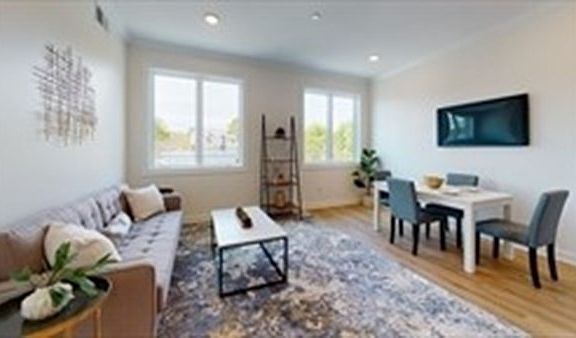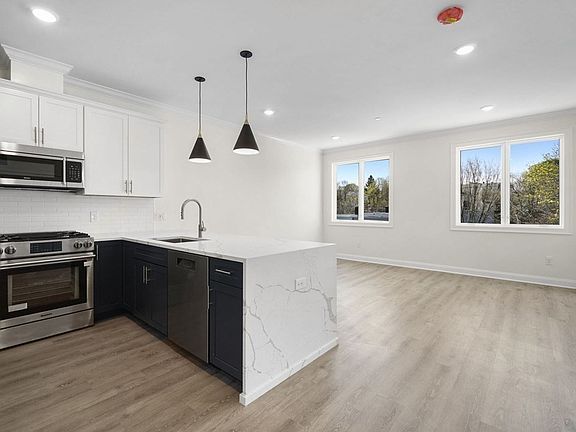 Welcome to Village Center Condominiums, Roslindale Square's newest luxury building. Located just moments from Adams Park, you will love these beautiful light-filled 2 bed/2 bath units featuring open floorplans, garage parking, high ceilings and great natural light. Enjoy cooking in the sleek, modern kitchen featuring quartz counters with breakfast bar, Blomberg appliances and ample work & storage space. A generous bedroom with private en suite luxe bath with double vanity, gorgeous porcelain tile and state-of-the-art Grohe fixtures controlling a multi-head shower. Enhanced sound insulation, WiFi temperature and security controls, W/D hookups and storage in this pet friendly, elevator building. WalkScore rates this location "Walker's Paradise"... great restaurants, shopping, farmer's market and transportation at your front door. Come see how easy the living can be! Shown by appointment.