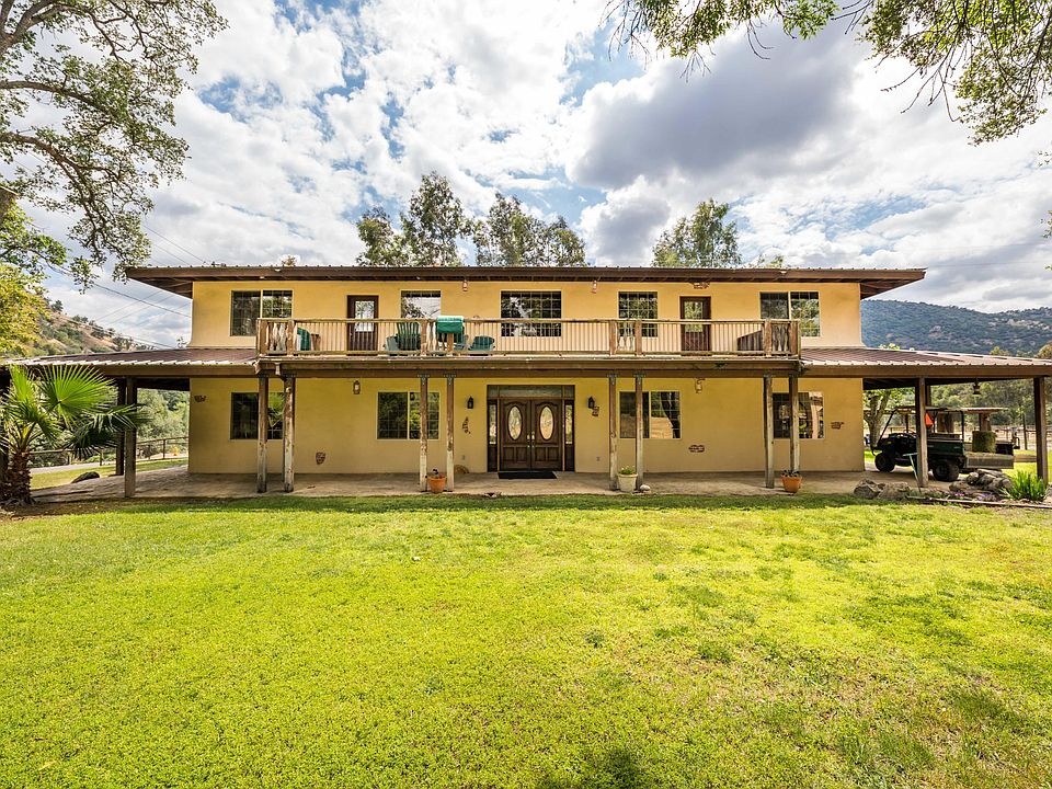 At 250 acres of flat land and gently rolling hills including direct access to the Kaweah River, this is the ranch of your dreams. Once used as a catfish farm, the property includes 20 different ponds 2 livestock paddocks, 5 different pastures, a large barn, a huge, well-appointed metal shop and 2 separate outbuildings with renovated 2 bed 1 bath living quarters in their respective second stories. With 3 beds, 3 baths and a raised sleeping loft you'll have plenty of space. The heated floor and fireplace will keep you cozy in the winter while the hay bale construction insulates so well you'll rarely ever need to run the air conditioner. The kitchen wraps around the entirety of one corner. There is a large circular office space in the very center of the upstairs and a lovely deck that runs the length of the home. There is a private air strip located on site! This property offers incredible views and boundless opportunities!