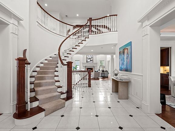 Situated in the exclusive Preserve community of Greenwood Village, 4282 Preserve Parkway North is a custom masterpiece inspired by the timeless allure of Beaver Creek. Built in 2006, this elegant home harmonizes traditional architecture with exquisite craftsmanship and luxurious finishes. From the moment you step into the grand two-story marble foyer, bathed in natural light, you’re enveloped in sophistication. The family room, with its soaring ceilings, rich cherrywood beams, and stately precast stone gas fireplace, creates a warm and inviting ambiance.