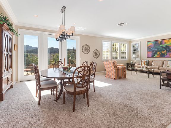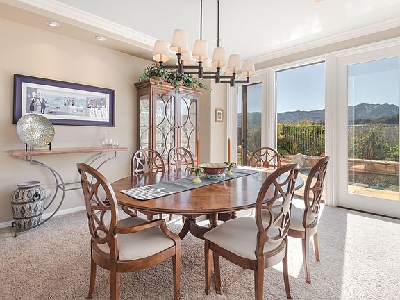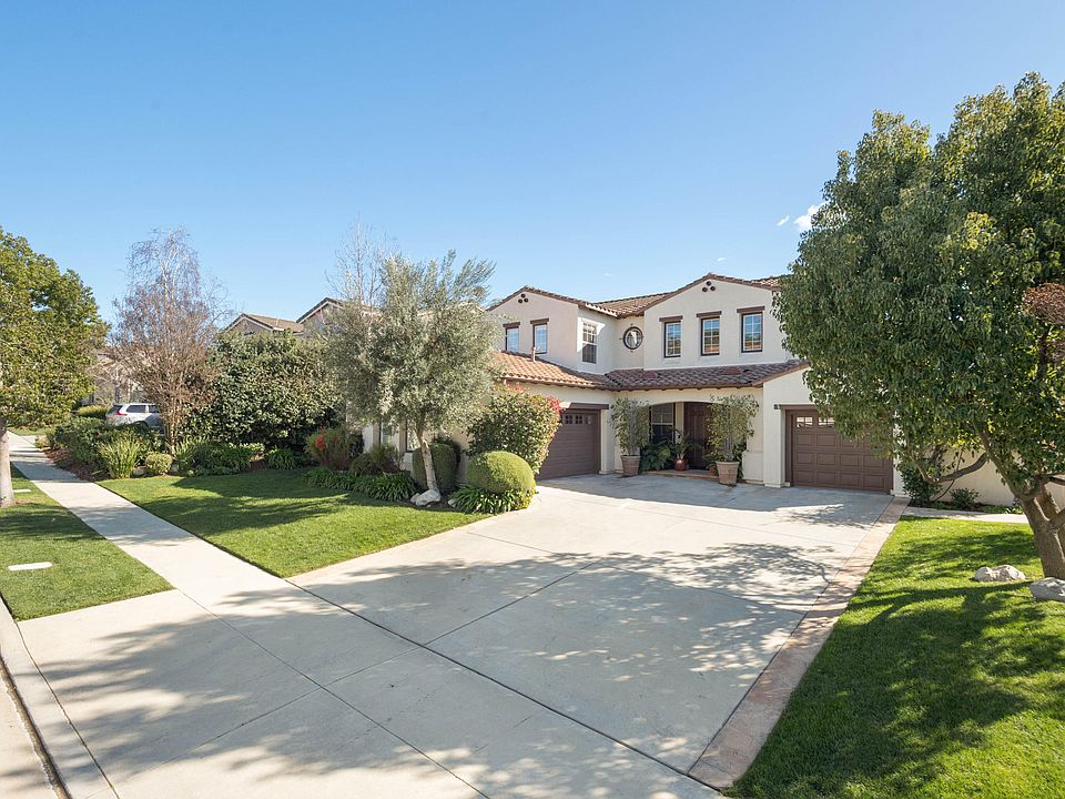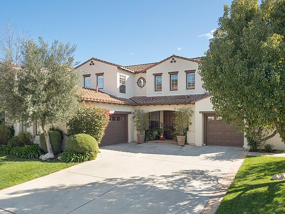 Resort style living in Dos Vientos! Spectacular 180+ degree views, with a perfect Boney Mountain view! Watch the sunrise & sunset from the very private backyard with sparkling pool & spa and cozy Cabana. Gaze at the Milky Way on starry nights. Gourmet outdoor kitchen includes counter with bar seating, DCS/Fisher/Paykel grill/stove, a flexible light, 6 drawers, cabinet, mini fridge and heaters. Located on a quiet street, with no through traffic. Quick easy walk to award winning K-8 Sycamore Canyon School - no major roads to cross. Covered porch & entryway lead to an elegant living room and dining room with soaring ceilings, open to backyard. One bedroom with full bath downstairs. Remodeled chef's kitchen has granite counters, Wolf stove & microwave, Subzero refrigerator, dual ovens, instant hot water at sink, pull out drawers in cabinets, eat-in area and huge walk-in pantry. Expansive upstairs master suite with views of the mountains. Completely remodeled Master Bath has dual sinks, vanity, large tub area, separate shower & huge custom walk-in closet. Ceiling fans in all bedrooms & family room. Garage space for 3 cars plus ample storage. Close to Del Prado Playfield, hiking trails, short drive to coast & beaches. California living at its best!!