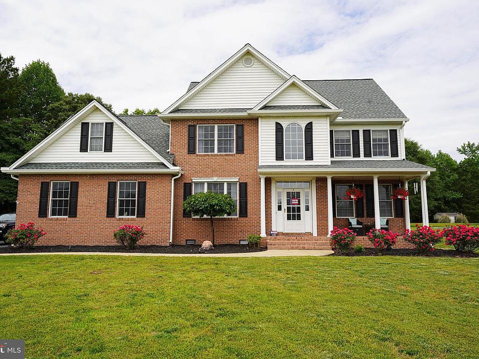 Gorgeous and spacious Elk Creek 4BR/2.5BA contemporary colonial on an expansive corner lot backing to trees, and overlooking the community's lovely pond and open space. Warm, welcoming curb appeal - brick façade and porch, mature landscaping. Bright and airy floorplan, yet also offers intimate, more formal spaces. Updated roof just 2 years ago - upgraded flooring throughout - hardwood and tile. 2-story foyer flanked by a living and dining rooms. Living room with decorative columns opens into the large family room w/gas fireplace. Kitchen w/tile floor, stainless steel appliance package, handsome cabinetry, granite countertops and breakfast bar, huge pantry, informal dining area, opens into the incredible sunroom. The sunroom is sure to be your new favorite place in the house [until you see the owner's retreat] - granite bar, cabinetry, wine fridge - walls of windows overlooking your patio, pool, and roomy yard backing to trees. Formal dining room - hardwood floors, crown-molding. Large mudroom leads to the attached 2-car garage, and half guest bath. Upstairs, the ultimate owner's suite - hardwood floors through the bedroom and sitting room, a massive walk-in closet, full, en-suite bath - oversized double-sink vanity, jetted corner soaking tub w/tile surround, step-in shower, tile floors. Bedrooms 2 and 3 each have a door into the 2nd full bath featuring a double-sink vanity, tile floor, tub/shower combo. Bedroom 4, and a handy 2nd-floor laundry room complete the home's interior. Entertaining outdoors also offers tons of options - relax on the front porch looking over the community pond -- BBQ and gather on the rear paver patio with propane-piped fire pit and torches -- laze with a book on the oversized deck around the pool -- roast marshmallows in a cozy nook in the trees around a 2nd firepit -- or play in the pebbled, tree-trimmed square currently used for a swingset and sitting area. Elk Creek is a gorgeous community of lovely homes, lush lawns, and mature landscaping, in a great location - minutes to the Rt 13 / Rt 50 Bypass, shopping and dining in Downtown Salisbury. Low HOA fees $150/year to maintain the common grounds - including the large pond.