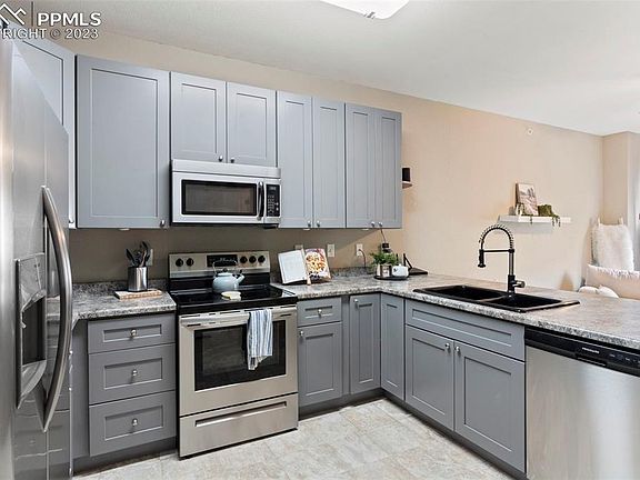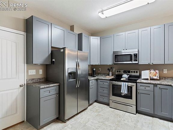 Lovely 2-story townhome with finished basement! Main level living and kitchen with ½ bath for your guests. The kitchen is fully equipped with stainless appliances, breakfast bar and great 42” cabinets. On the upper level, you’ll find the spacious primary suite with private bath and walk-in closet. Another bedroom and a full bath give everyone their own space. The basement with another full bath, provides options to use as a 3rd bedroom or rec room. Extras include central A/C, ceiling fans, window coverings and shelving in garage. Great location with convenient access to I-25, military bases and Powers corridor.