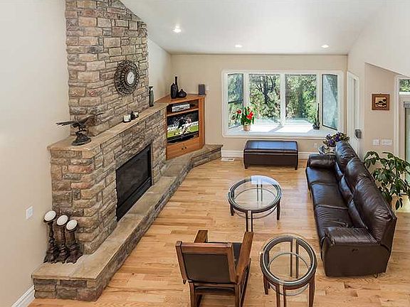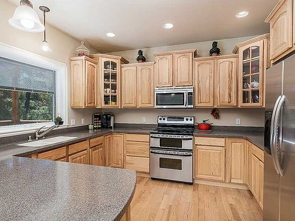 Beautiful home, beautifullly maintained. Serene setting in the pines, edge of park. Main floor with master, gorgeous tiled bath, laundry, living room w rock fireplace, hickory kitchen, stainless appl., solid counters, 5 bed ovrszed 3 grg