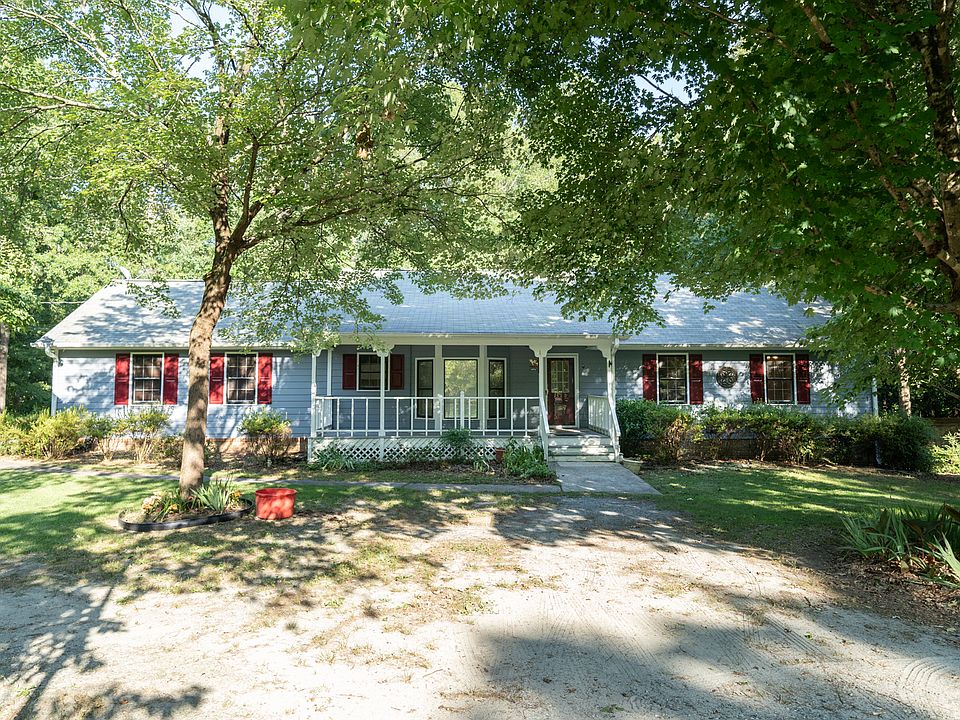Lovely traditional four bedroom three bath ranch on partially finished basement. Enjoy a little country life with easy access to the City. Home is on 4.11 acres on a private wooded lot. Completely remodeled with all appliances, fixtures, roof, water heater and HVAC less than four years old. More recent renovations include a second master closet and upgraded bathroom complete with a luxurious clawfoot bathtub.