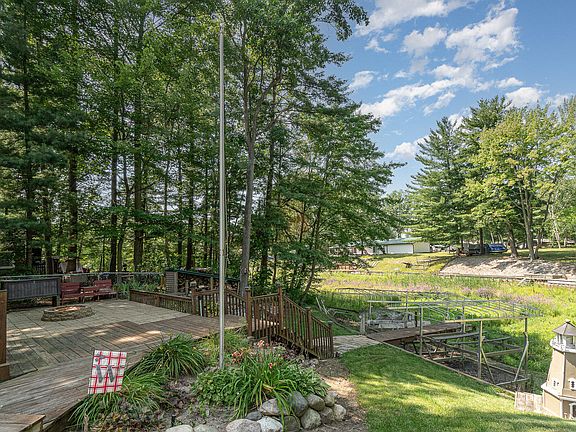 Custom built in 2010 you'll surely appreciate the attention to detail, the thoughtful layout and beautiful fixtures & finishes used. Located in a neighborhood of homes on a canal off Wixom Lake, be ready for boating and all that lake life provides when the water returns to normal levels. A paved road & concrete driveway leads you to the entrance of this home. Walk into a bonus space currently used as the game room & entry. Plenty of room to hang the coats and leave the shoes on one end and to hang out, relax and watch the game. Vinyl plank flooring runs through the home and the dark color is a gorgeous contrast for the Maple cabinets with granite countertops in the kitchen. Attractive pendant lighting, a sideboard area with additional cabinets & countertops along with a granite snack bar seating area with included bar stools. Dining area flows from the kitchen and opens up to the living room. 2 door walls step you out to the 330 sq ft sunroom you can use all year round with the gas fireplace.(not included in the homes sq ft listed) This gorgeous room has a knotty pine tongue and groove ceiling & a ledge rock accent wall. Offering a view of the paver patio with firepit, landscaped yard and the canal with suspended dock. Extra large main level bedroom is just across from the full bath. Main floor laundry has a lot of storage & space to fold clothes. Upstairs are 2 more roomy bedrooms with closets. There is a huge bonus room that can be a 4th bedroom, workout room, home office, studio or whatever you choose. This level also has a convenient half bath. An outside covered "kitchen" with grill, stove &sink is included. Wonderful home to live in year around or escape to on the weekends. The bonus space could be a garage again. The I-beam is still in place. Check the Four Lakes Task Force website for current and future assessment info and for all the information pertaining the restoration of the lakes. GPS won't take you to this house. Take Anderson off Jones to house on Right.*Accepted offer subject to inspection.