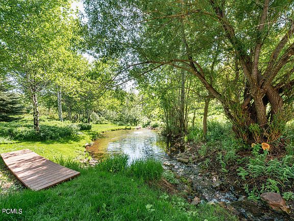 This unique Hidden Cove oasis promises an unparalleled and serene living experience. The sprawling one + acre double lot offers ample usable yard space and boasts a private creek and pond, creating a private sanctuary. Step inside the home, and you'll be greeted by the warmth of new wide plank white oak hardwood floors, complemented by abundant, brand-new triple pane windows that infuse the space with natural light. The open chef's kitchen seamlessly connects to a family room with fireplace and a spacious outdoor deck.  The thoughtfully designed main level features a formal dining space, living room with wood burning fireplace and vaulted ceilings, an office, powder room, and mudroom. Upstairs you'll find a luxurious primary suite with a private Juliet balcony. The primary bathroom has an inviting stand-alone soaking tub and a spacious steam shower.  Two bedrooms with lofts, a full bathroom, and laundry room complete the upper level. The lower level has been tailored for entertainment with a wet bar and welcoming second living room that opens to the magical backyard.  Two bedrooms and a three-quarters bathroom make this a great area for family, guests, or simply cozying up for a movie. An oversized three car garage, able to house an RV, includes abundant storage and a work bench. An additional room is connected to the garage, allowing more storage and a pantry. New roof installed in 2023.  Hidden Cove's prime location provides seclusion, yet easy access to Salt Lake City, Kimball Junction, and Park City trails.