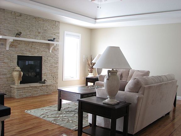 KITCHEN INCLUDES TILE FLOOR, SPLASH AND COUNTER TOP. HICKORY CUSTOM WOOD CABINETS. PANTRY. WIDE WHITE TRIM THROUGHOUT HOUSE. LIVING ROOM INCLUDES HARDWOOD FLOORS, COFFERRED CEILING AND GAS FIREPLACE. MASTER BEDROOM INCLUDES COFFERRED CEILING, WALK IN CLOSET, MASTER BATHROOM WITH JET TUB, ¾ SHOWER AND TILE FLOORS. OVERSIZED DECK. WALK-OUT BASEMENT. CONCRETE PATIO. HI-EFF. FURNACE. ELECTRIC HOT WATER HEATER.