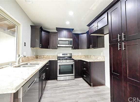 Remodeled single-story end unit in Riverside. 3 bed and 2 bath all new interior paint with recessed lighting and luxury vinyl floors. Open kitchen with lots of cabinetry in the kitchen, granite countertops and stainless steel appliances. New vanities and quartz countertops in bathrooms. Master walk in closet. Private patio for barbecuing. Newer windows. 2 car attached garage. HOA includes 24/7 security , lawn maintenance and tennis courts. Large community park with in walking distance. Close to the Galleria Mall, La Sierra University, Hunt Park, Kaiser Hospital and the 91 Freeway. This home has been well taken care of. This home is a PUD - Planned Development.