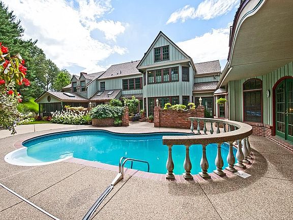Unique design and architecture in THE GLADES OF HAMPTON. This home is large and open. Stunning architectural details throughout this entire home. The great room boasts cathedral ceilings, custom woodworking details to the bar and fireplace and immediate access to the kitchen. The unique design gives instant access from many rooms to the back of the home, pool area and screened porch with hot tub make it a spectacular space for entertaining. Custom designed cabinetry in kitchen provides ample storage space. In 2003 an extensive addition to the home which includes a 2nd two-story open great room with amazing woodwork overlooking the pool area which is located in the center of the addition. This room is connected to a fantastic pool house/room with entertaining space and full bath. There are three bedroom suites with high ceilings in the lower level of this addition along with an additional space for family and friends to gather. Additional suite above garage. Infinity pool also!