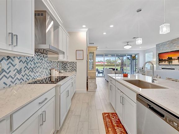 The open-concept kitchen boasts high-end stainless-steel appliances, quartz countertops, and ample cabinet space, flowing into the living room with a cozy fireplace. Wall to wall sliding door leads to a screen patio with a breathtaking lake view. Owner suite convenient located on the first floor and additionally a private suite located on the second floor.