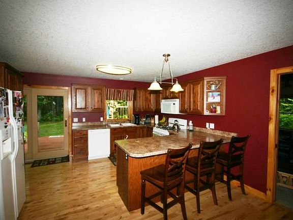 Great Country Home, sitting on 10.5 wooded acres, is the perfect spot for any wildlife lover. Features include; a beautiful covered porch, maple flooring, a vaulted living room with stone fireplace, pine lined ceilings, an outdoor wood boiler that offers a 2nd heat option and a finished garage-perfect for all your storage needs. The private setting this home offers, within 20 minutes of town, will appeal to any rural buyer.