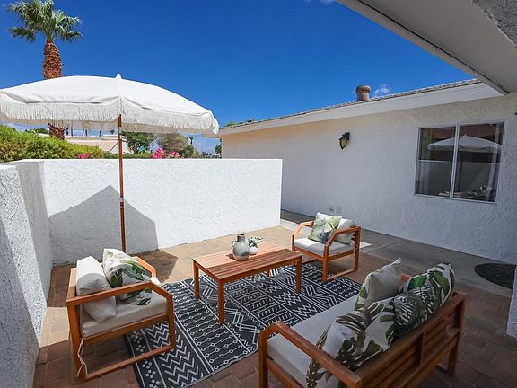 Rare find in Palm Desert with no HOA and a specialty lot with RV side yards on BOTH sides of the property! Imagine the possibilities here, there is so much space for a possible ADU, pool, you name it! This charming 3 bedroom, 2 bathroom home has had a little facelift with exterior paint, all new landscaping, and has been staged with style! POTENITAL POTENTIAL POTENTIAL! Located just behind Palm Desert High School, this little secret gem of a neighborhood overlooks an adjacent golf course with stunning water and mountain views! Do not let this one get away, it is one of a kind!