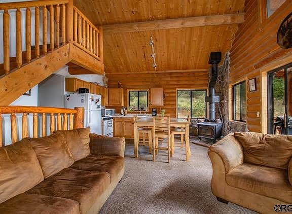 What's not to love! NO HOA's! Come breathe the fresh mountain air at "Three Dog Hill" cabin located on 5.19 acres at 9,200 ft. at the very end of the road and surrounded by ponderosa, spruce and Aspen trees within feet of BLM! As you enter the cabin, you are greeted by a rustic, warm and cozy living room and kitchen area. Loft bedroom is above and two additional bedrooms on the main floor are heated by the wood stove. Lower level remodeled in 2011 boasts a bar area, family room, game room and bath all heated by a propane fireplace. The entire beetle-kill re-do is spectacular! Presently used as a Airbnb and for a personal get-away, home comes fully furnished to include flat screened tv's and is move-in ready! Workshop/wood shed out back along with a chicken coop for farm fresh eggs. Room for rv parking with circular driveway. Arkansas River and surrounding Sangre de Cristo and Collegiate Mtn. Ranges supply never ending adventures for fishing, rafting, biking, hunting, camping, climbing 14'ers and the Royal Gorge Bridge. Come live the quiet, laid back life in the beautiful mountains of Colorado and see what you've been missing! Listen....The Colorado high country is calling!
