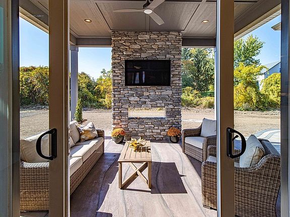 Designed to showcase quality construction & detail throughout, this 2022 Parade of Home by Harrington Homes will captivate you! Solid maple flooring welcomes you along w/an intricate wood wall that adorns the foyer & is complimented by 8' tall doors & tray ceiling. Double doors lead you to an owners suite oasis which includes a sitting area, large w/in closet & a luxury bathroom w/ no step shower. The main living space includes an open great room kitchen area w/access to approx 350 sf of covered living space w/double sided gas fireplace. The great room includes a step ceiling (12.5' at the center), a gas fp w/Dekton surround & built in cabinets & shelves. A wet bar ties the ktchn & great room together. The ktchn includes handmade white & stained cabinetry, a hidden pantry, a 9' Island w/waterfall counters, GE matte white appliances & Dekton Counters & backsplash! A pocket office off the ktchn is the ideal get away & overlooks the front of the home. Spacious mudroom area includes a 1/2 bath & private laundry as well as access to your 3 car garage! 2 guest bedrooms are off the dinette area & include a private bath! Unfinished bsmt is prepped for finishing! Taxes To Be Assessed