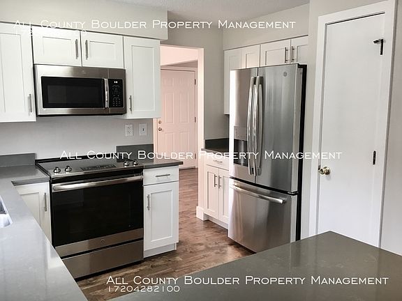 SCHEDULE A SHOWING ONLINE AT: showmojo.com/lh/1837b8b041 Completely remodeled single family home in Boulder, AVAILABLE NOW! This home looks brand new inside; all new carpet and flooring, new paint, and updated kitchen and bathrooms. Enjoy the spacious main floor master with vaulted ceilings, ample closest space, and an en suite bathroom with beautiful floor to ceiling tile shower. Tons of living space on the main level with large family room, separate dining area, and remodeled kitchen. Kitchen boasts stainless steel appliances, quartz countertops, pantry, and breakfast bar. The family room opens up to a wonderful grassy fenced-in back yard. Upstairs are two additional bedrooms, a full bathroom, and a loft area that overlooks the family room. Downstairs in the finished basement, enjoy an additional bedroom, large bathroom, huge living room, and ample storage space. Washer and dryer hook ups available in the basement. Two car garage is also included. One pet is negotiable, but no smokers please! Tenant to pay for all utilities, and take care of yard maintenance. AVAILABLE NOW, and looking for a one year lease. Showings available every day 8am-8pm, EXCEPT for Saturdays. MAX OCCUPANCY is 4 unrelated people. First months rent, security deposit, and $200 move-in inspection fee all due upon lease signing. For more information, or to schedule a showing, contact Erica at eoberholtzer@allcountyboulder.com, or call All County Boulder at 720-513-3320. For our other available rentals, or to apply online, visit allcountyboulder.com