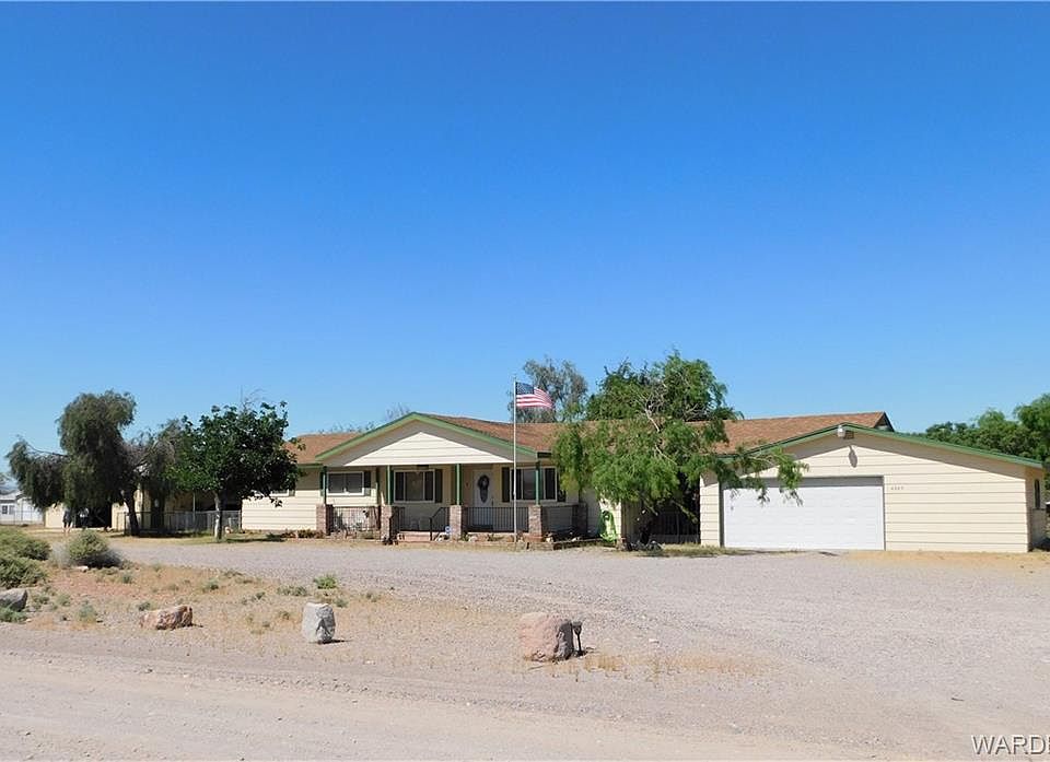 Site Built Home On 2.34 ACRES! In Fort Mohave, AZ! 4 Bedroom 2 Bath Home, with Huge Kitchen & Pantry! Dining Room! Study/Den! Raised Wood Floors! Bedrooms Have Mirrored Closet Doors! Covered Front Porch! Patio off Master Bedroom! Breezeway between House & 30 x 22 Finished Garage! 30 x 55 Detached Garage with 2 Evaporative Coolers, 3-10' Doors, and Rear Annex that Holds 2 Cars! Covered RV Parking 50'! Has Water Well and Septic System!