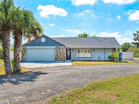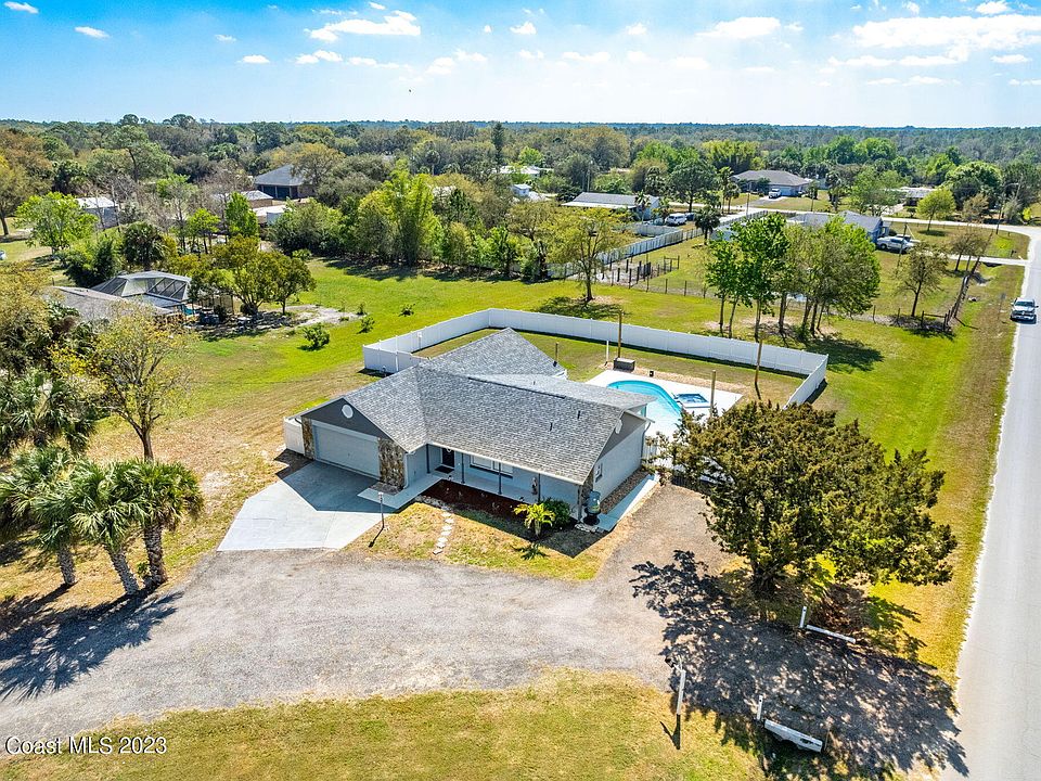 MOTIVATED SELLER! WELCOME HOME TO CANAVERAL GROVES! BRING ALL OFFERS! This Single Family Pool Home sits on a 1.02 Corner Acre Lot. This corner acre lot is High and Dry and easily accessible by a paved road! This home features 3 Bedrooms, 2 Bathrooms and a 2 Car Attached Garage, 2018 Shingle Asphalt Roof, 2022 Lennox HVAC System with a UV Germicidal System, FPL Certified Electrical Panel, 2019 Whirlpool Water Heater, Stainless Steel Appliances, New Bathroom Fixtures, Planation Shutters, Tile and Vinyl Laminate Flooring, Indoor Laundry. Freshly Painted Interior and Exterior with Beautiful Landscaping! Outdoor features include an In-ground Fiberglass Pool with a Spill over Spa, Vinyl Fence Surrounding Pool Area, screened Lanai and sitting area that is Perfect for outdoor entertaining!