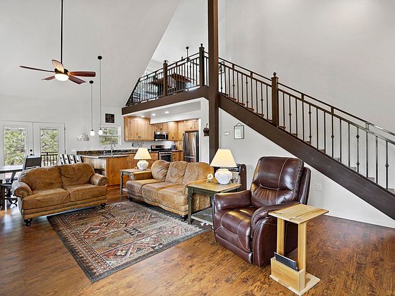 Built in 2017, this charming cabin is a turnkey treasure! 2 bedroom, plus loft as a bonus 3rd bedroom, office or hobby rm w/ 2 & a half baths, is the perfect Mountain Retreat. Open floor plan w/ high vaulted ceiling, custom stone gas F/P, & large sunny windows. Custom Alder cabinets & gorgeous Granite countertops thruout. Kitchen Island & stainless steel appliances. Separate laundry rm, high end washer & dryer on pedistals. R/O water system. Oversized 2 car garage. Metal roof and exterior cedar siding. Covered front & back decks in low maintenance trex w/ custom steel railings. This Beauty even has an outdoor firepit built w/ pavers & has solar mood lighting! Positioned under the tall pines, on a quiet cul-d-sac w /in an HOA gated community. Beautiful Log clubhouse. This one won't last!