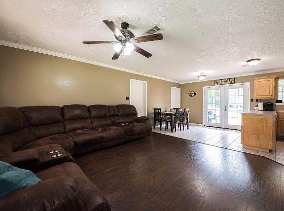 Perfect starter home located in Vidor on a quiet street ready to be your new home! 4bed 1.5bath Well-maintained property inside and out featuring an open concept between living room and dining area/kitchen. Kitchen includes breakfast bar, lots of cabinets space, built-in microwave, dishwasher, and refrigerator. New wood laminate flooring in living room and all bedrooms. Inside utility room with washer/dryer hookup plus extra room for a freezer or storage. Backyard is large and has a storage building.