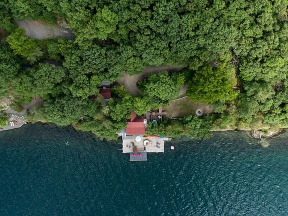 Unheard of! 2 quaint cottages nestled on a very private 10+ acre parcel in the heart of wine country. Just 4 miles North of Watkins Glen on East side of Seneca Lake. Roughly 210 feet of private lakefront with same frontage on St. Rt. 414. Main cottage with bedroom, bathroom, kitchen, living room with stone fireplace. Adjacent guest cottage with bedroom, bathroom, kitchenette, enclosed front porch. Lakefront has multi-level decks and docks with fantastic lake views. Bar area in lower level. Covered boat lift and mooring whips on dock. Plenty of vehicle parking. Unbelievable property!