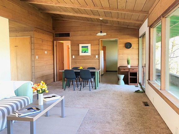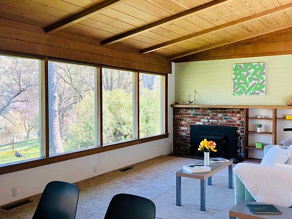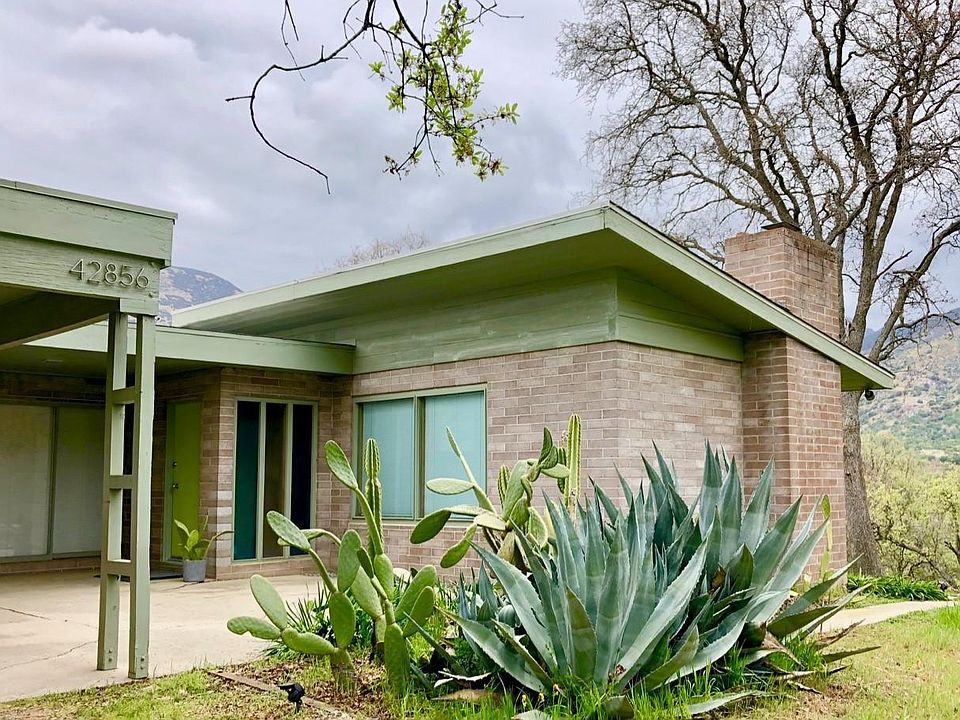 This Mid-Century Modern home is ready for the discerning buyer who is looking to purchase a rare haven with dramatic, sweeping panoramic views including Moro Rock and Alta Peak in Sequoia National Park. Integrity and authenticity abound in this early modern gem set at the end of a private road. An abundance of windows create a heightened sense of indoor/outdoor living. This private and tranquil home is a light and bright showplace against a mountain backdrop. Keen period detail and original color palette bring its period of significance to life and the style harbors a strong connection to nature. A detached building can be finished as an office or studio. Over one acre of land offers expansive open spaces, privacy and is complemented by the central location between the village and Sequoia National Park. Incredible sunrises and sunsets await from your own rejuvenating retreat. Long time owners recent upgrades include a new roof, exterior paint, upgraded plumbing from galvanized to PIX.