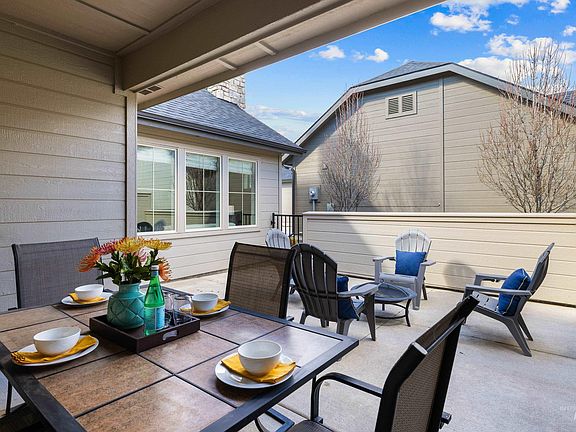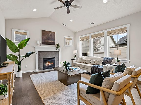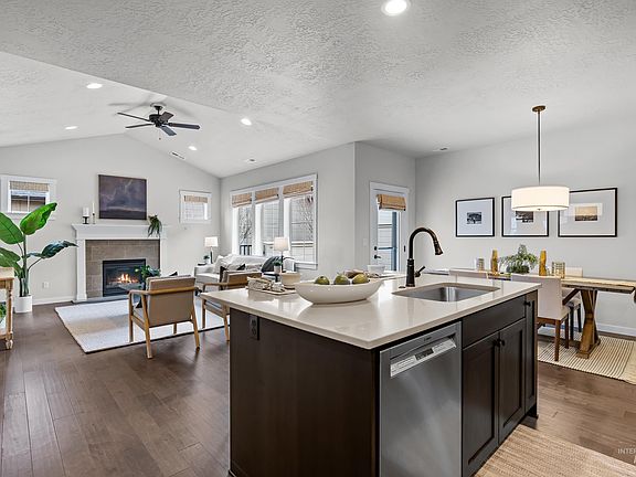 Enjoy a life of convenience and ease in the newer gated community of Movado Village! Ideal location just 11 minutes to downtown Boise and convenient to new south YMCA, The Village in Meridian and more. Smart floorplan features three bedrooms plus office all on a single level. Vaulted ceilings and an abundance of windows create open, airy rooms that are a true delight. Private courtyard patio offers outdoor space for dining or relaxing year-round. Fabulous kitchen with walk-in pantry, high-end appliances, water filtration and generous island. Kitchen and all bathrooms feature high-quality quartz and tile backsplash and surrounds. Garage features upgraded storage solutions as well as exceptional storage throughout the home. Open spaces, walking paths, community pool, 2600 sq ft community clubhouse which includes catering kitchen, large gathering room, zoom/office space & 24hour exercise facility, you have everything you need within reach. HOA covers lawn/shrub maintenance, snow removal, exterior paint & roof.