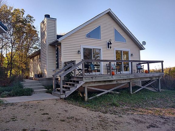 Charming country chalet sited on 2+/- acres sited at the end of the private drive offering a large yard, a beautiful setting, treed surroundings, and views for miles all in a location just a few miles from Galena. Open and airy great room style living room with vaulted ceilings, lots of windows, wood burning fireplace , and dining area feeds to functional kitchen and provides a great space to entertain. Two main level bedrooms are just steps away, and both have easy access to shared full bathroom. Step out on the deck and take in the treed surroundings or distant views, or just sit and enjoy all that nature has to offer. Large unfinished lower level allows for room to expand or is great for storage. Detached 2 car garage with additional space for storage or workshop area was built in 2013