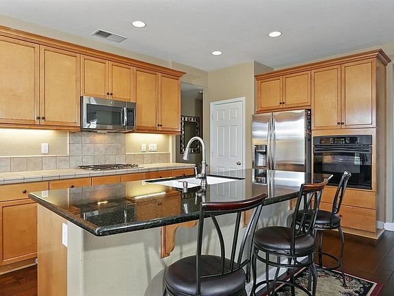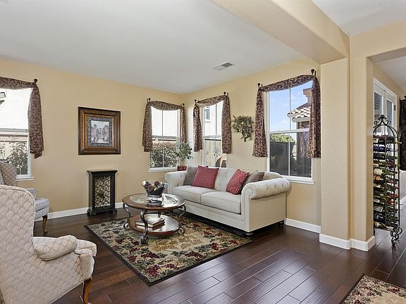 Beautiful, move in ready home behind the gates of Serrano. Open floor plan with gorgeous new wood floors living room, dining room, hallway and kitchen (2017) downstairs and upgraded carpet, new tile floors in all three bathrooms (2017) new granite counter tops in all three baths (2017) freshly repainted inside. Granite counters in kitchen and upgraded cabinetry throughout with new stainless steel appliances! Bedroom and full bath downstairs with bonus room upstairs. Builder just recently replaced stucco! Upgraded wrought iron stairway railing, new ceiling fan in family room! New outdoor speakers! Lovely courtyard with fountain, too many upgrades to list!