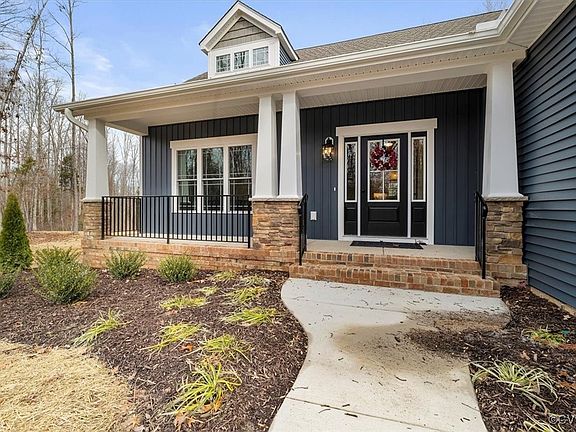 Nestled on 7.44 wooded acres not in a neighborhood, this brand-new home offers privacy and luxury. Home is 100% complete and the photos are of the actual home. Featuring a first-floor primary suite and an open-concept layout, it showcases superior craftsmanship from one of the industry's best builders. Designed with style and functionality in mind, this home includes 9' ceilings on the main level, elegant stone accents, upgraded board-and-batten siding, and low-maintenance LVP flooring throughout most of the first floor. The Craftsman-style interior trim with custom built-ins adds a touch of timeless charm. The Great Room flows seamlessly into the Dining area and Kitchen, creating the perfect space for entertaining. The Kitchen is a chef’s dream, equipped with a smooth-top double oven/cooktop, large pantry, farm sink, spacious island with accent shelving, and recessed lighting. The first-floor primary suite offers a spacious walk-in closet and a luxurious full bath with a tile shower, frameless glass door, and a private water closet. Upstairs, you’ll find three additional bedrooms, two full baths, and a walk-in storage area.