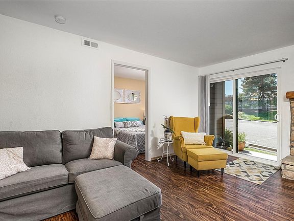 You don't want to miss this super cute and tastefully updated condo in Cherry Creek Schools. Don't let the sq ft fool you. This roomy 1 bedroom condo is light & bright w/space to spread out. Open kitchen w/white cabinets, plenty of counter space, updated appliances and large pantry. Adjacent dining space w/room for a large dining table. Living room has a cozy fireplace. Beautiful laminate wood throughout. Bedroom features a huge walk in closet. Fresh paint, white doors and trim. New water heater, new AC window unit, new washer and dryer & new windows and patio door. Convenient ground level unit with direct access to parking right outside your door. Large storage closet. Across the street from Quincy Reservoir, walk to trails, & quick access to 225, 470 and Buckley Air force base. Transferable Home warranty already in place.