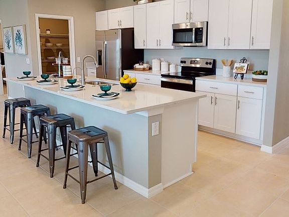 Entering through the front door, visitors experience a clear sight line all the way through the core of the home. Bright and spacious, the Magnolia plan features an extended entertaining corridor that includes the dining room, kitchen and gathering room, with sliders opening at the rear onto the back patio. A long prep and serve island, ample counter space and a generous walk-in pantry are perfect for foodies while the central location of the kitchen keeps the chef in your household engaged during social gatherings and events.Three roomy secondary bedrooms share a pair of full baths and the tranquil owner's suite is tucked quietly into the back of the home. Enjoy plenty of storage with an L-shaped walk-in closet and a well-appointed bath with large shower enclosure, private WC and two sinks. Structural options added to 4286 Southern Vista Loop include: Covered lanai. REPRESENATIVE PHOTOS ADDED!