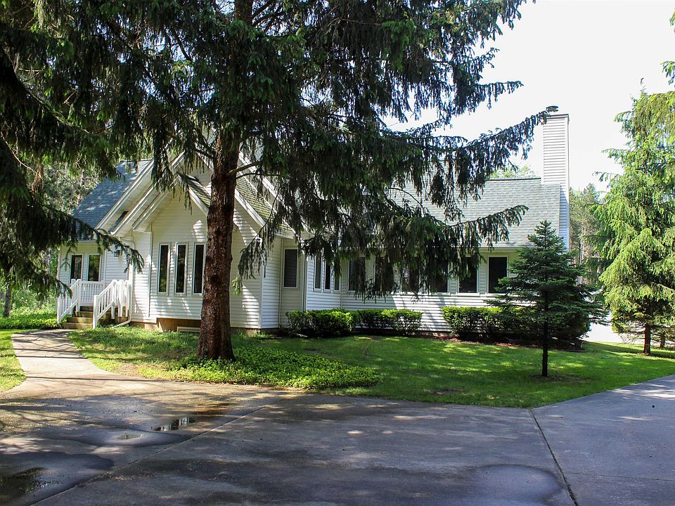 Welcome to your dream home nestled amidst nearly 20 acres of serene pine forest. This stunning 4-bedroom, 3.5-bathroom residence offers the perfect blend of luxury, comfort, and privacy. With a spacious finished basement, a large pole barn with an insulated shop area, and an attached garage, this property is ideal for those seeking both a retreat and a functional living space. This home features spacious living areas decked out in hardwood flooring, a large family room with cathedral ceilings and fireplace, an open kitchen with custom cabinetry, and a finished basement with additional living space for guests, storage, or for your own basement recreation area. Separate office entrance. The possibilities are endless! And the space keeps going! In addition to the large 2 car attached garage with basement access and unfinished bonus room, you'll find a large 50x63 pole barn with a 50x16 loft area and an attached heated and finished workspace (28x38). This property is ready for all kinds of recreational activities including hunting, hiking, and riding the mowed trails scattered across the acreage. There are 3 hunting blinds already set up on the property and wildlife is abundant! From the road to the pole barn, the driveway is paved and flanked with tall pines for additional privacy. The thick beautiful lawn boast several productive fruit trees. Located a short distance from the highway and M46 and all the amenities and activities Alma has to offer. Be sure to schedule your private showing today! #7031