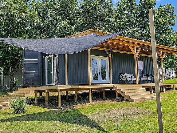 READY TO DABBLE IN LAKE LIVING WITH A FUNKY TWIST?! Picture this: a trendy container home, just a hop, skip, and a jump away from the serene shores of Lake Eufaula. It's not just your standard box, it's a stylish dwelling combining fresh, modern design with a warm, cozy feel that's wrapped with natural light. Born from a shipping container, this home offers a repurposed lifestyle without skimping on pizzazz or comfort. Inside, you'll uncover a kitchen ready for anything, a comfy living area, space for a bedroom or murphy bed, and a sleek bathroom showing off the latest fittings. It's got foam insulation, RV hookups (30 & 50 amp), waterproof flooring, a kitchen sink moonlighting as a workstation, and a premium spot on the lake's blue water side. After a day of sun-filled fun, rinse the sand away in your outdoor shower. The spacious covered deck is all set for BBQ parties, star-gazing, or simply just to enjoy the outdoors. The real magic of this home? It's the blend of modern life and natural beauty, just a golf-cart ride away from the water's edge. Ideal for a weekend getaway, a lake rental, or a full-time abode, with boating, fishing, swimming, and Duchess Creek Marina just moments away. Ready to take the plunge into lake life? Let's explore together!