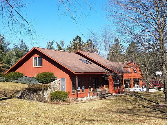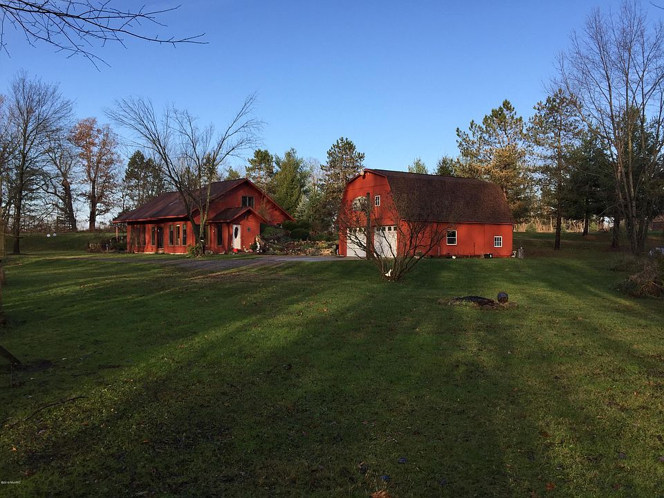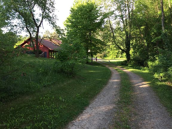 Do you love nature and want a unique place to live? Welcome to ''The Hobbit House'' at 4287 Lyons Road. 5.3 acres with privacy/woods/trail. Professional appraisal shows 1906 sq ft finished. Built in 1986 with energy efficiency in mind, the bermed home saves on heating bills - plus also has wood burner heat. Custom built oak cabinets, Corion counters & custom rough-sawn doors. Tons of storage closets/cubbies. Furnace aprox 12 years old, central air, tankless on-demand water heater, oak & hickoryfloors, new carpet. Lots of windows. Vaulted wood ceilings. 2 Skylights. 24X32 barn/garage has overhead doors for 3 cars & loft above for man cave. Professionally landscaped, gardens lovingly maintained, outdoor landscape lighting, flagstone patio, new cement driveway pad. Playhouse/shed/wood storage