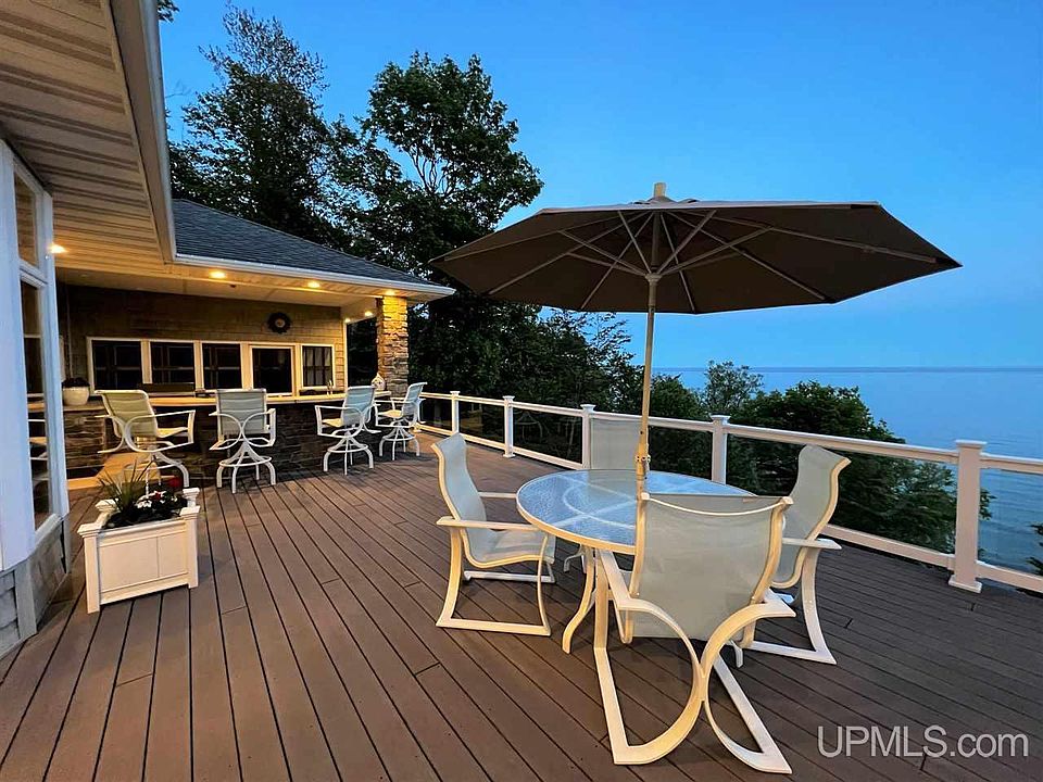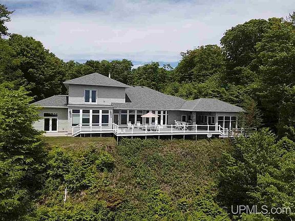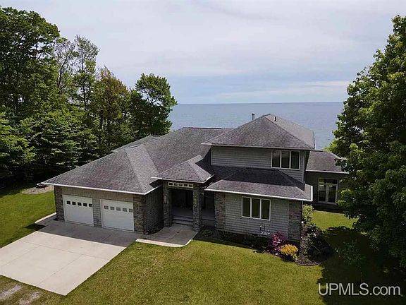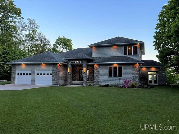 This magnificent 3700+ sq ft home features expansive elevated views of Lake Michigan from all main livings areas plus the master bedroom as well as one of the 2nd floor guest bedrooms. Situated on approximately 10 acres of beautiful hardwoods with 450 ft of sand beach frontage this home is surely the Lake Michigan home you’ve been waiting for with all the seclusion and privacy that comes with a property of this size. When you enter the home through the beautiful custom double doors you will be immediately be greeted with the feeling of luxury from every angle as well as a stunning view of Lake Michigan, a 54” wide screen gas fireplace and a custom railing leading you to the 2nd floor. The well thought out floor plan takes you from the living area, dining area and gourmet kitchen seamlessly. The kitchen features multiple height granite counter tops, stainless steel appliances including built in wine fridge, a prep sink and loads of cabinets and a huge Chef’s pantry. The main floor Master Suite features a split bath with large walk-in shower along with access to a Hot tub room with 3 large door walls to enjoy the feeling of the outdoors while relaxing in the hot tub. The master walk-in closet incorporates the laundry with large island for storage and convenient folding area along with many built-in shelves and drawers. The outdoor kitchen off the lakeside resort style deck has all the amenities you will need for entertaining as well as a spacious screened in porch. 2nd floor includes a cozy nook, 2 spacious guest rooms with walk-closets and another split bath. The main floor office could double as a 4th bedroom and has a built-in desk and custom cabinets along one wall. Geothermal heat, sound system throughout, heated garage and crawl space with concrete floor, meticulously maintained landscaping, stairway to sand beach are just a few more of this homes great features. The 30 x 40 pole barn with 16 x 40 addition has high overhead doors for RV and boat storage.
