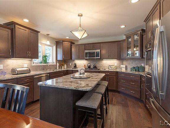 Completed in 2018, no expense was spared in every detail of the custom building and design of this home! Luxury, energy efficient upgrades and extras throughout the entire interior and exterior. This is your dream home, already built and ready for you to move right in! Masterfully designed custom Burdick kitchen with double oven, stainless steel appliances, subway tile, spectacular quartz countertops, and low-noise disposal and dishwasher. Master suite features walk-in tiled shower, herringbone tile floor and more. Basement is beautifully finished with premium carpeting and padding, two egress windows, and convenient 1/2 bath. Top of the line owned water softener system included. Lot is quite private, with established pine trees at rear property line. Three decks plus patio space call you to slow down and relax. Upgrades are too many to list here, please contact agent for complete list! HOME WARRANTY INCLUDED!
